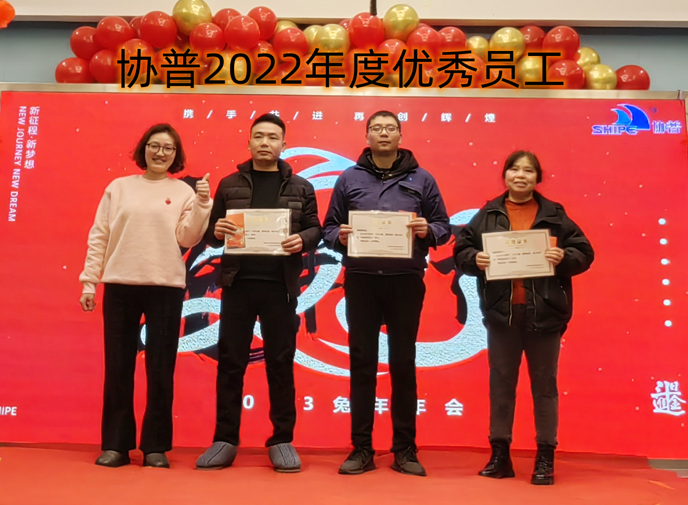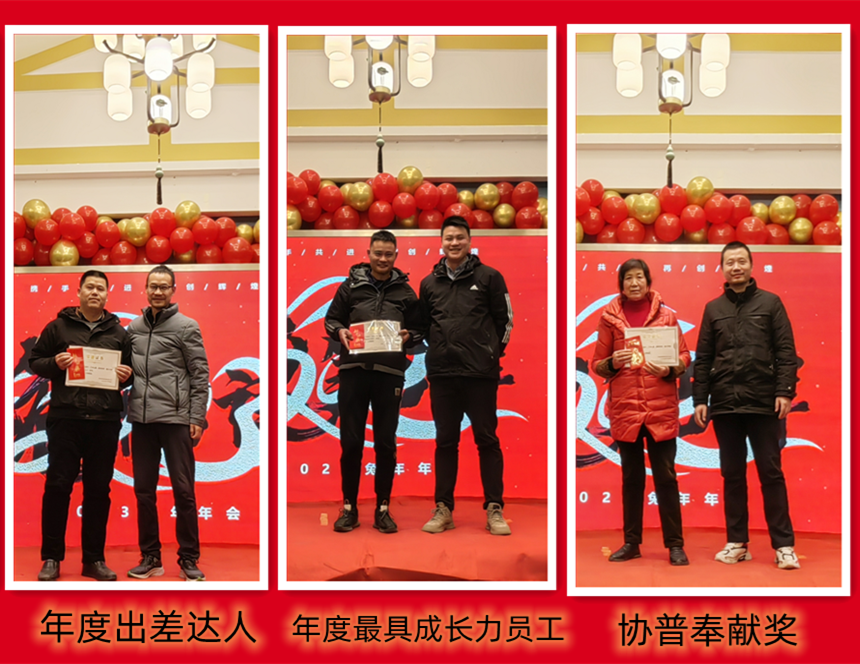 趙總致辭后,公司為2022年度表現(xiàn)優(yōu)異的團(tuán)隊(duì)和個(gè)人進(jìn)行了表彰。人才是公司生存和發(fā)展之本。公司發(fā)展的每一步都離不開(kāi)每個(gè)協(xié)普人的努力和付出。本年度公司共評(píng)選出三名優(yōu)秀員工——陶?;顒?、徐金鳳,“2022年度突出貢獻(xiàn)獎(jiǎng)”——張傳東、桂佳俊,“2022年度敬業(yè)獎(jiǎng)”——陳阿龍,“年度宣傳小能手”——宋玉秋;“協(xié)普年度出差達(dá)人”——胡金龍,“年度最具成長(zhǎng)力員工”——王傳銀,“5S進(jìn)步團(tuán)體”——技術(shù)部、車(chē)間鉚焊班,“質(zhì)量進(jìn)步團(tuán)體”——質(zhì)量部,“協(xié)普奉獻(xiàn)獎(jiǎng)”——?jiǎng)⑼ビ瘛?/span>