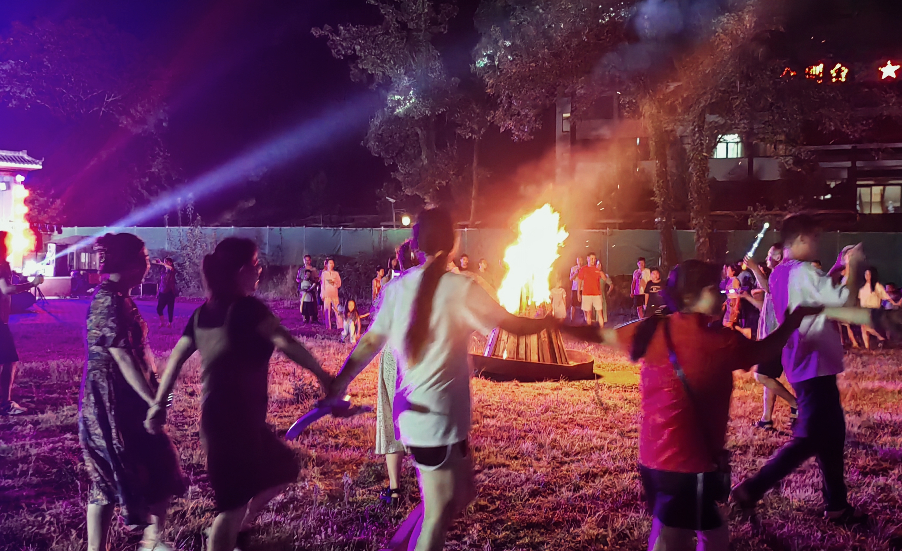 傍晚,一群人手拉著手圍著篝火轉(zhuǎn),大家跟著音樂跳舞,旋轉(zhuǎn)起來仿佛能把生活的煩惱憂愁通通甩開,篝火晚會,是一場能讓人激情澎湃的活動!